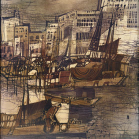 In 1959, Seah Kim Joo moved back to Singapore to study at the Nanyang Academy of Fine Arts (NAFA), studying oil, watercolour, woodcut and sculpture. While still an art student, he held regular exhibitions and his paintings were featured in Singapore Art Society’s Annual Exhibitions. After graduating from NAFA in 1961, he also joined the Ten-Men Art Group, participating in regular field trips around Southeast Asia and group shows with the other artists in the group.