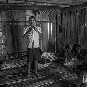 For instance, while in in Siem Reap, Cambodia, Tung captured first-hand how locals in the countryside were left to cope with flash floods that destroyed their homes and further diminished what were already scant possessions. In one image, children swim in the water and laugh on as they cling to the rear of a half-submerged lorry that struggles to ferry the villagers to dry land. Another reveals a lady lounging indifferently on her bed, watching the television in a half-submerged room lined with pails. His images highlight how resilient ordinary people, and even children, can be in the face of hardships.